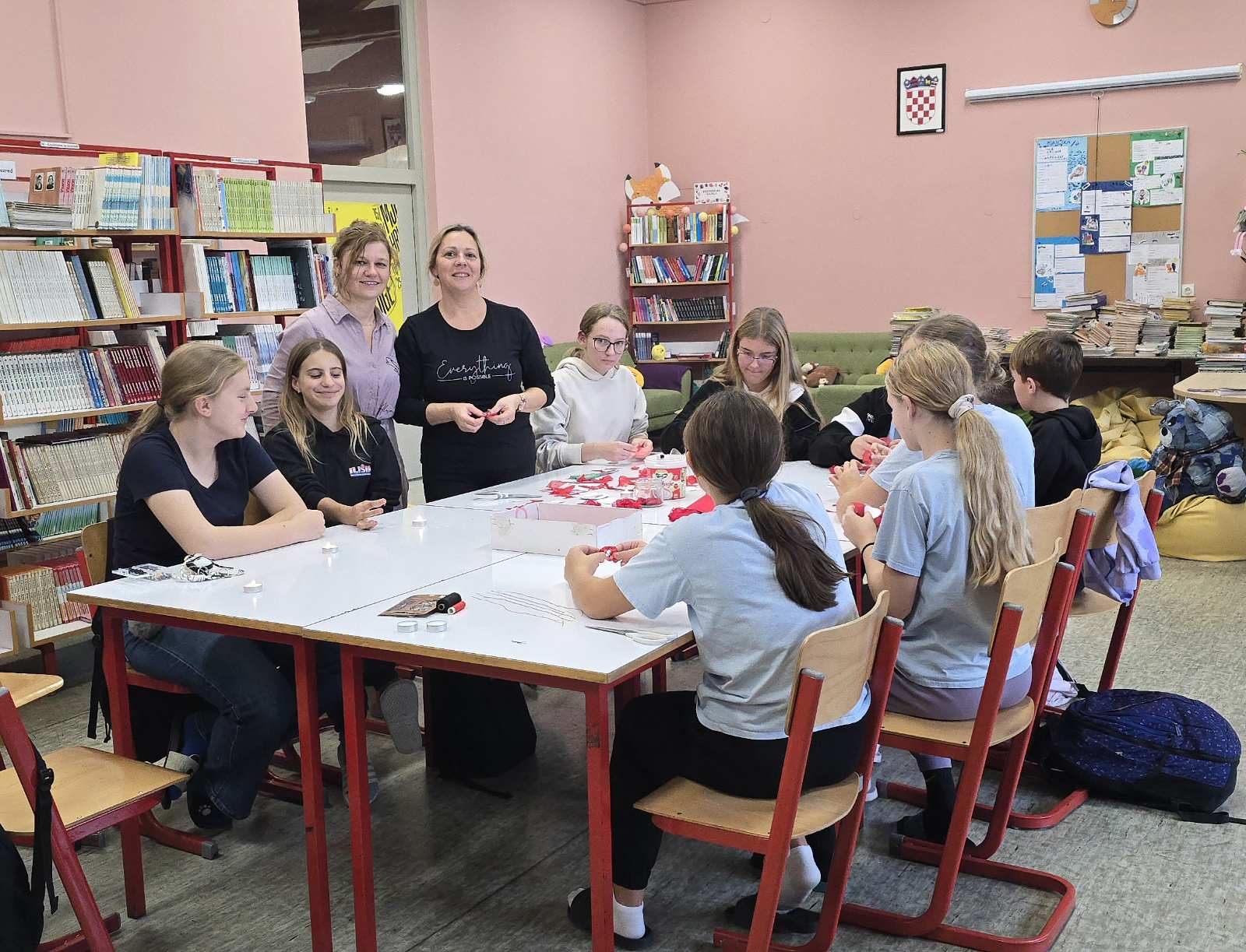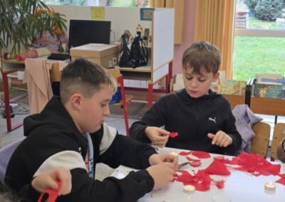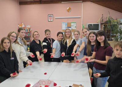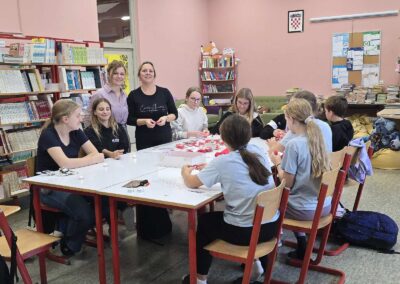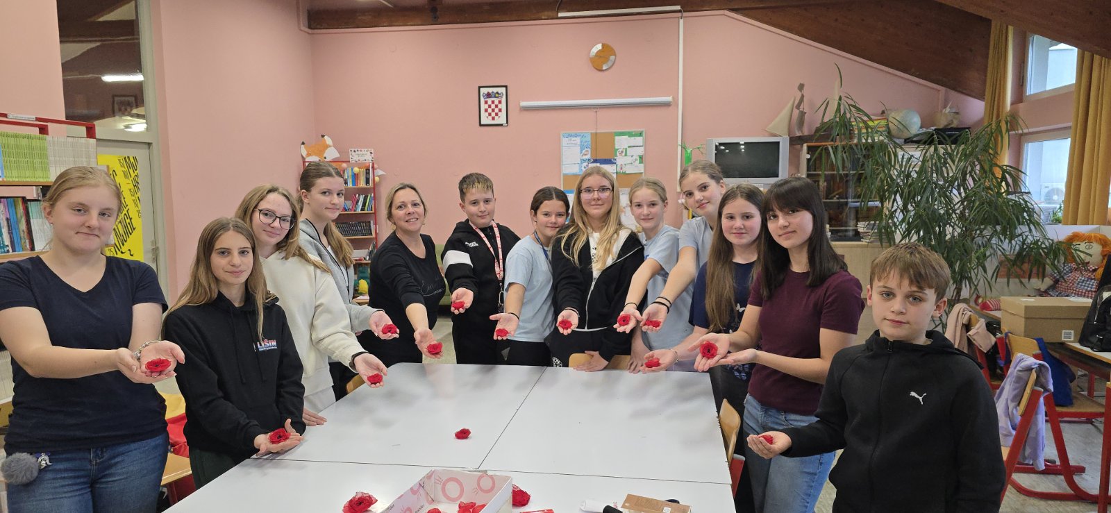 Učenice su sudjelovale i pomagale u organizaciji izrade ukrasnih broševa s motivom cvijeta maka te u prezentaciji proizvoda na postavljenom izložbenom stolu.