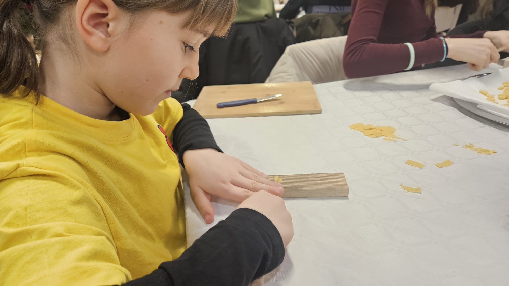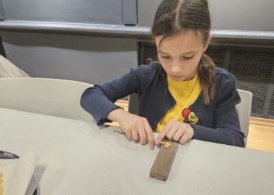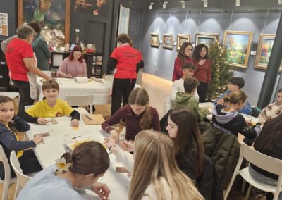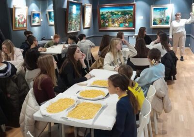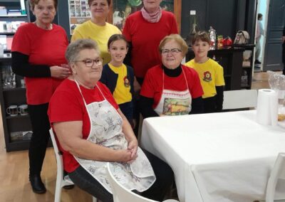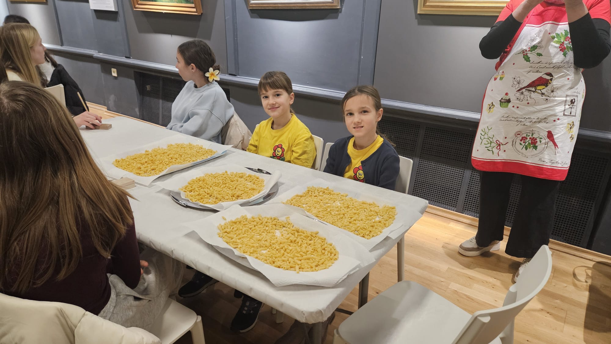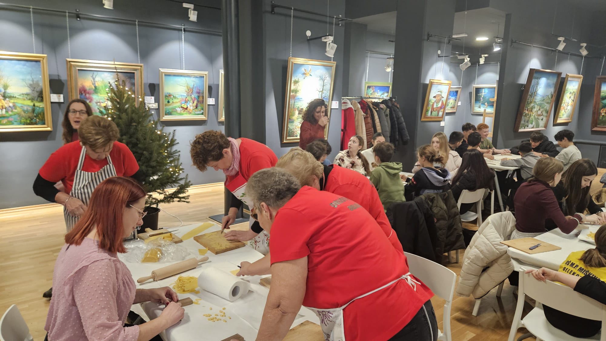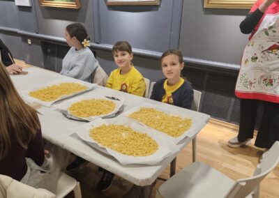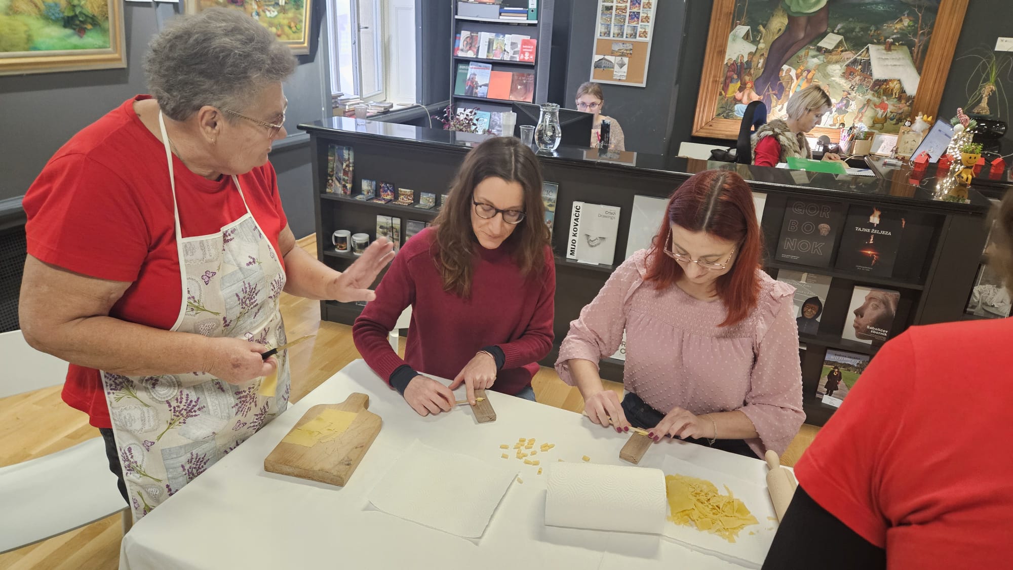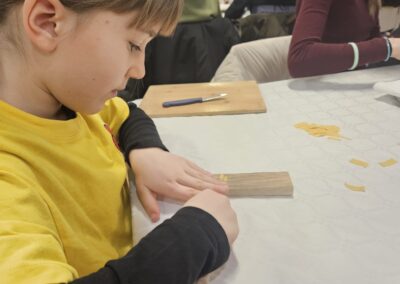 Učenice Mila Gašpar (2.r.) i Anna Marie Pavša (3.r.) sudjelovale su u pokaznoj radionici izrade požiraka s ravnateljicom Sonjom Vuljak i članicama Društva žena u Galeriji Koprivnica. Učenice su pokazale kako vješto izrađuju ovu đelekovečku tjesteninu, a sa zanimanjem su ih pratili i isprobali raditi isto učenici 7.r. iz OŠ Podolice te njihovi vršnjaci iz Italije. Bilo je ovo lijepo druženje i lijepo iskustvo.
