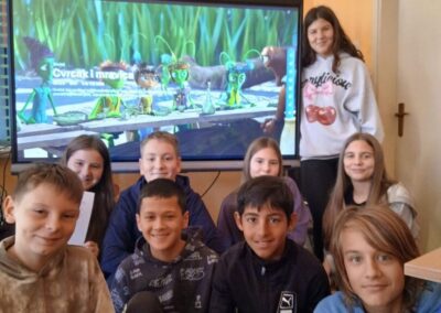 Na satu hrvatskog jezika učenici 6. razreda pogledali su suvremeni animirani film „Cvrčak i mravica”, dok su učenici 8. razreda uživali u klasičnim hrvatskim animiranim ostvarenjima „Profesor Baltazar” i „Mali leteći medvjedići”. Nakon projekcija uslijedila je kratka rasprava o porukama filmova, ulozi animacije te o tome kako se animirani film mijenjao kroz vrijeme – od ručno crtanih likova do suvremene 3D animacije.