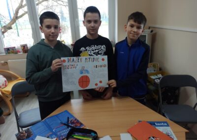 U drugom dijelu druženja naglasak je stavljen na odrednice dobrog plakata: jasan i uočljiv naslov, pregledan raspored sadržaja, kratki i razumljivi tekstovi te primjereni slikovni materijal. Nakon toga učenici su u skupinama izrađivali vlastite plakate, primjenjujući stečena znanja i vještine.