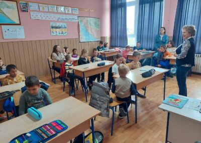 Nakon izvršenog upisa u 1.razred u šk.g. 2025./2026., upisani predškolarci došli su na druženje k svojoj budućoj učiteljici Snježani i k učenicima 4.r., a onda su četvrtaši posjetili buduće đake u vrtiću kojeg još uvijek polaze. Druženje je bilo zabavno, puno lijepih aktivnosti i komunikacije među djecom, a najveselije je bilo kad se pjevalo i plesalo. Sve aktivnosti osmislile su teta Tihana iz vrtića i učiteljica Snježana te je bilo vrlo zanimljivo vidjeti kako veliki pomažu malima i kako mali daju dobre ideje velikima.