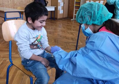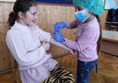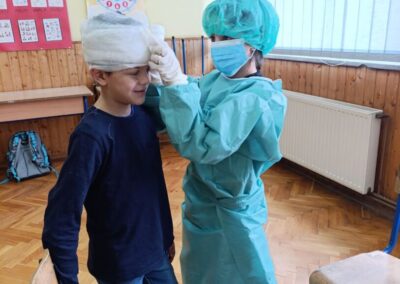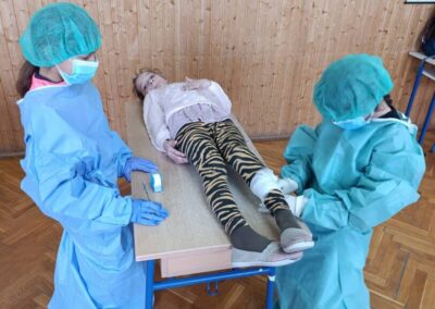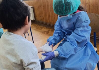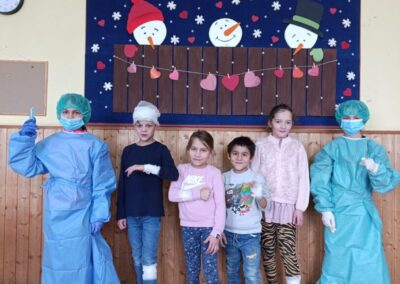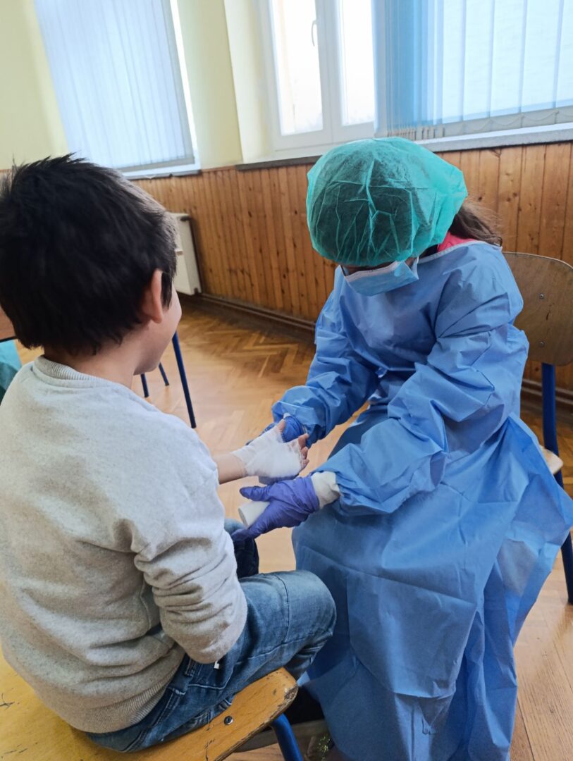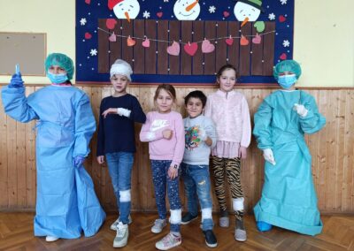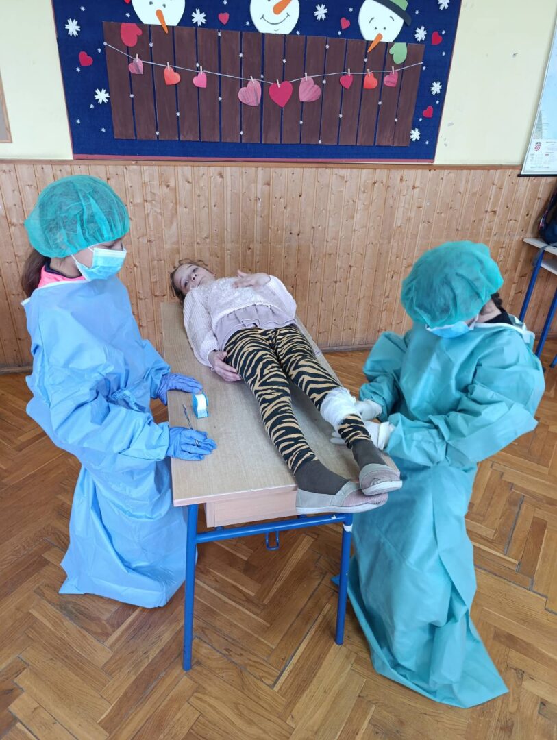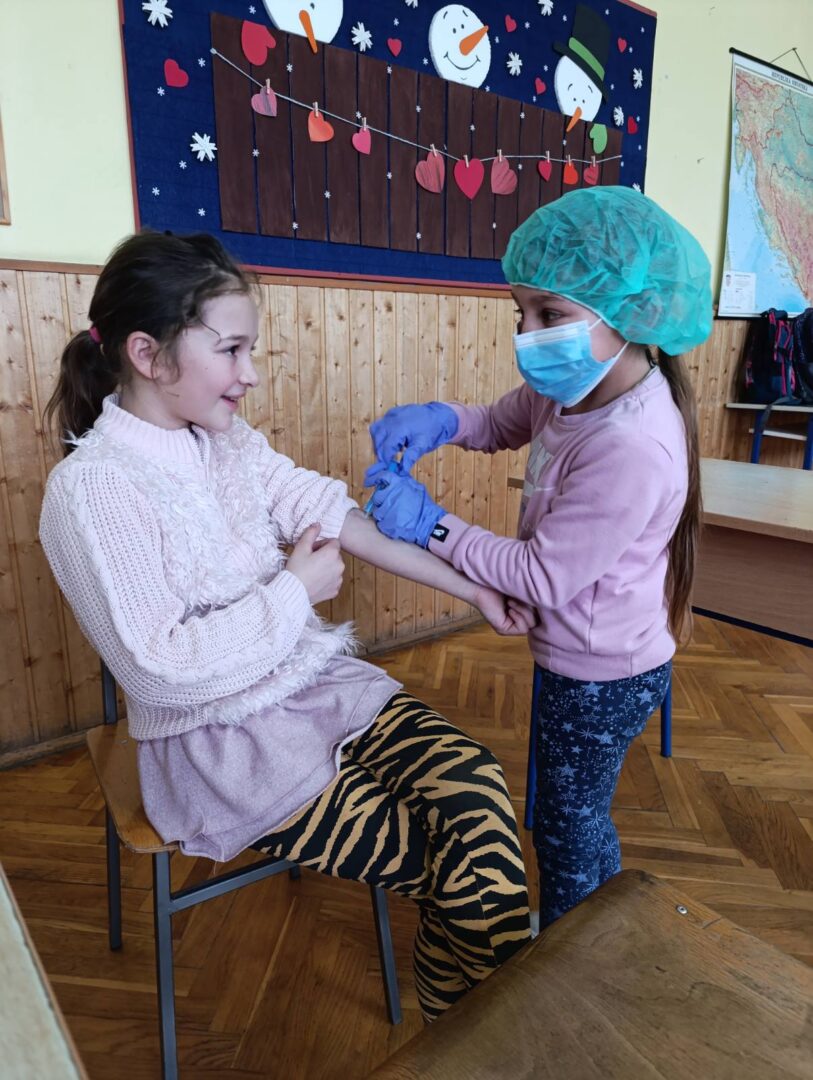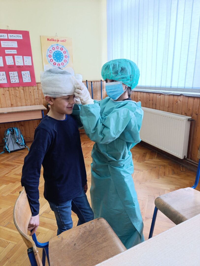 Najprije su se pomolili Gospi Lurdskoj čiji se blagdan obilježava istog dana, a koja se istovremeno povezuje s brigom za bolesne i ozdravljenjem. Zatim su pogledali video koji je zorni prikaz njezinog ukazanja siromašnoj djevojci Bernardici. Odgovarali su na pitanja, kao i navodili vlastite primjere pomoći bolesnima uz crtež. Na kraju su imali priliku i sami iskušati kako je biti liječnik, odnosno pacijent. Sa svojim zdravstvenim iskaznicama koje su samostalno izradili odglumili su posjet bolnici te u parovima prikazali prematanje rana i poneke operacijske zahvate, i to s pravom bolničkom zaštitom opremom, a učiteljice su im prethodno objasnile čemu služi svaka od tih stvari te važnost pružanja pomoći bolesnima i sebi samima.