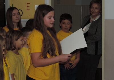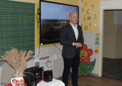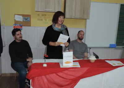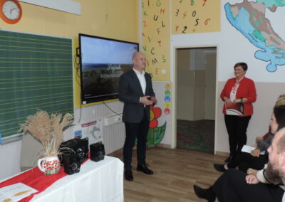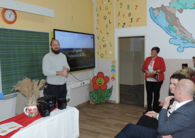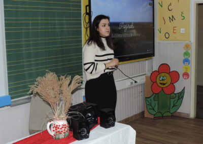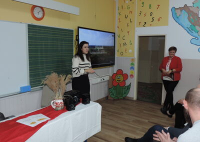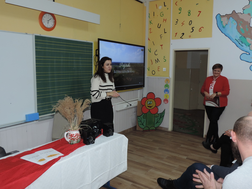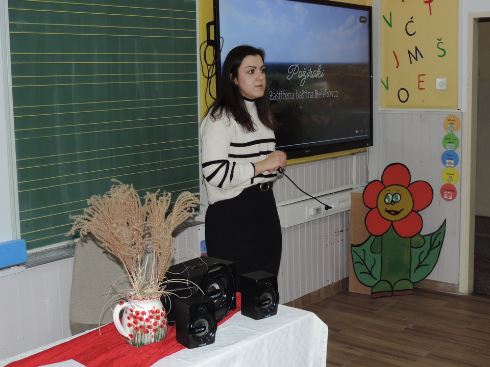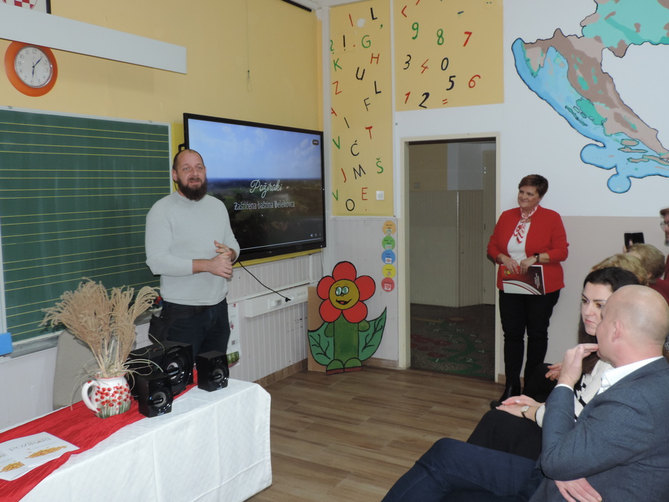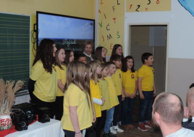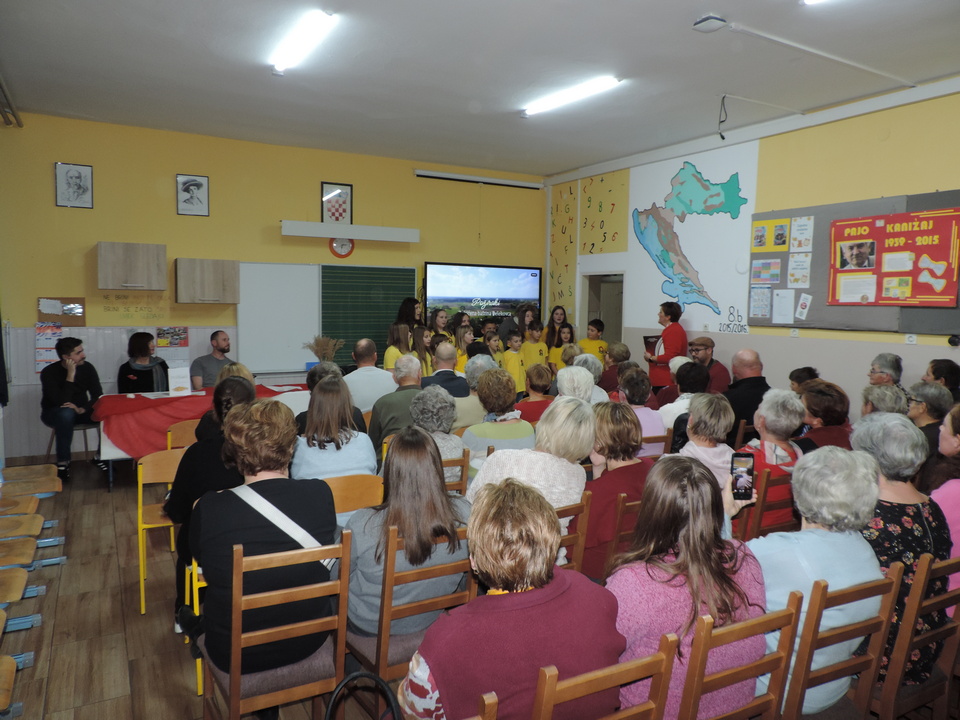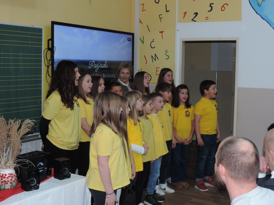 Na početku programa sve je prisutne pozdravila ravnateljica Sonja Vuljak te je i nastavila voditi ovaj program. U programu promocije sudjelovali su učenici škole pjevanjem pjesama o Đelekovcu, Rea Mikulan (6.r.) krasnoslovljenjem vlastitih stihova o svom mjestu te učiteljica Tatjana Međimorec koja je prisutne oduševila pročitanom pjesmom o požirakima, koju je sama napisala.