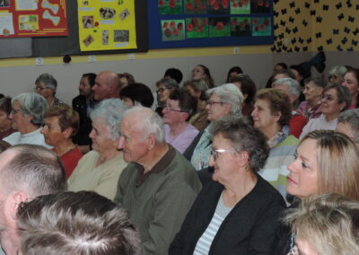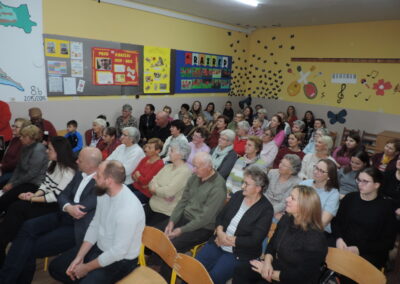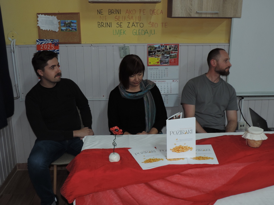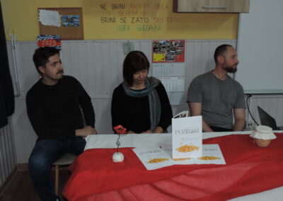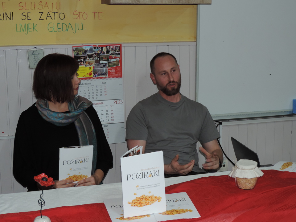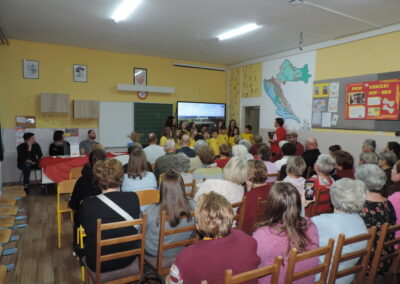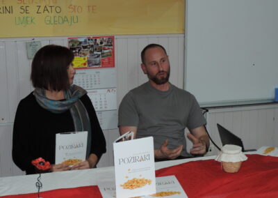 O filmu i snimanju govorili su autorica Vesna Peršić Kovač te snimatelji Marko i Luka. Svojim prisustvom svoj je doprinos ovoj večeri dao ravnatelj Muzeja grada Koprivnice, gospodin Ivan Valent, načelnica općine Lara Samošćanec Kiš i potpredsjednik Hrvatskog sabora i gradonačelnik Koprivnice Mišel Jakšić. Svi oni su se i obratili prisutnima. Školska je učionica bila ispunjena do posljednjeg mjesta, a osobito veseli što su prisutni bili oni koji su snimani za potrebe ovog filma. Bila je tu naratorica teksta Štefica Sirutka koja svojim osebujnim načinom izražavanja njeguje zavičajni đelekovečki govor te glavni “glumci” Ivan Levak i Ljuba Celiščak, koji su pokazali kako se izrađuju požiraki i drvca.