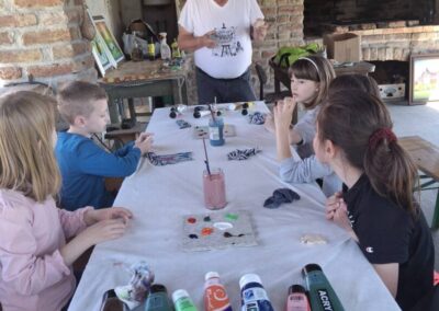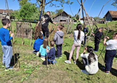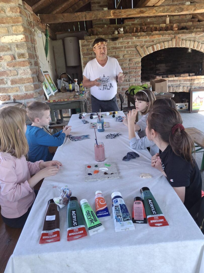 U petak, 24.4. 2026. učenici 1.,2. i 3. razreda bili su na terenskoj nastavi na OPG-u „Stari zanati“ u Hlebinama.  Na imanju su proveli šest zabavnih školskih sati učeći, putem radionica o starim zanatima i životu naših predaka, uz rijeku Dravu. Sudjelovali su u četiri praktične radionice: naivnom slikarstvu, pletarstvu, lončarstvu i izradi drvenih igračaka.  U likovnoj radionici akrilnim su bojama oslikavali dravski kamen kojeg su sami morali pronaći nakon predavanja slikara naive Zlatka Kolareka. U radionici starih igračaka obrisnim su crtama na drvetu crtali prvo slovo svog imena ili neki manji predmet koji je nakon toga majstor stolar izrezao, a učenici su ga  brusnim papirom dovršavali. Upoznali su način izrade starih drvenih igračaka, a svoje su uratke ponijeli kućama.