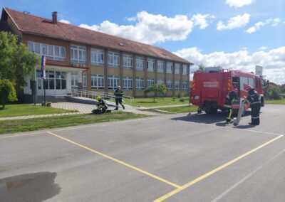 U suradnji s Vatrogasnom zajednicom općine Đelekovec uspješno je provedena pokazna vježba evakuacije učenika i djelatnika Škole. Simulirana je situacija požara u unutarnjem prostoru škole, kretanje po zadimljenom prostoru unutar zgrade i sam izlazak učenika i djelatnika. Vježba je uvijek potrebna za obje strane, za one koji spašavaju i one koji su unesrećeni, osobito zato da bi se izbjegle situacije panike i utvrdio način postupanja u stvarnim događajima.